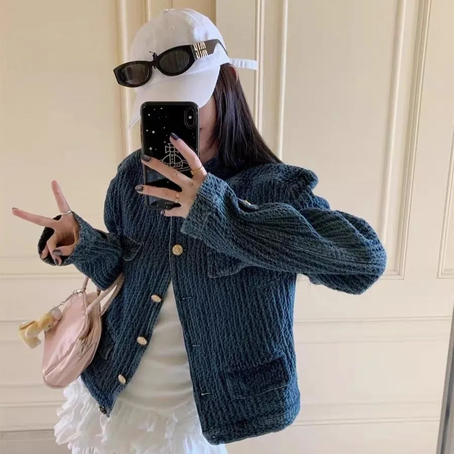 03. 小香風丹寧短版外套|立領金釦、精緻復古