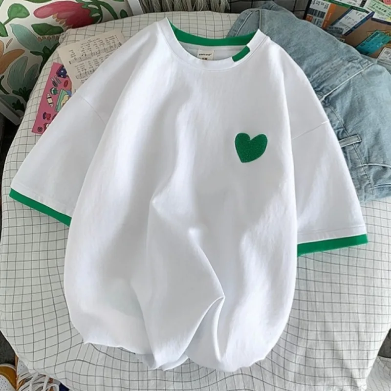 愛心 刺繡 假兩件短袖 T恤 設計感 小眾 閨蜜 情侶裝 半袖 上衣