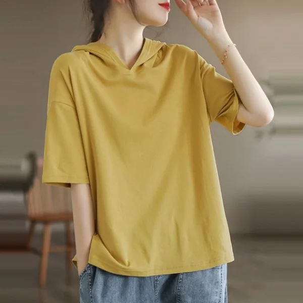 純棉短袖連帽T*6色可選 夏天薄款帶帽打底衫可外穿純色T恤上衣