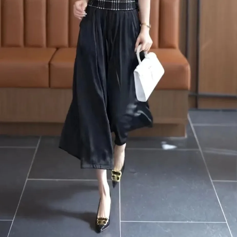 絲滑垂感緞面裙褲 寬褲 休閒高腰大碼顯高顯瘦氣質冰絲闊腿