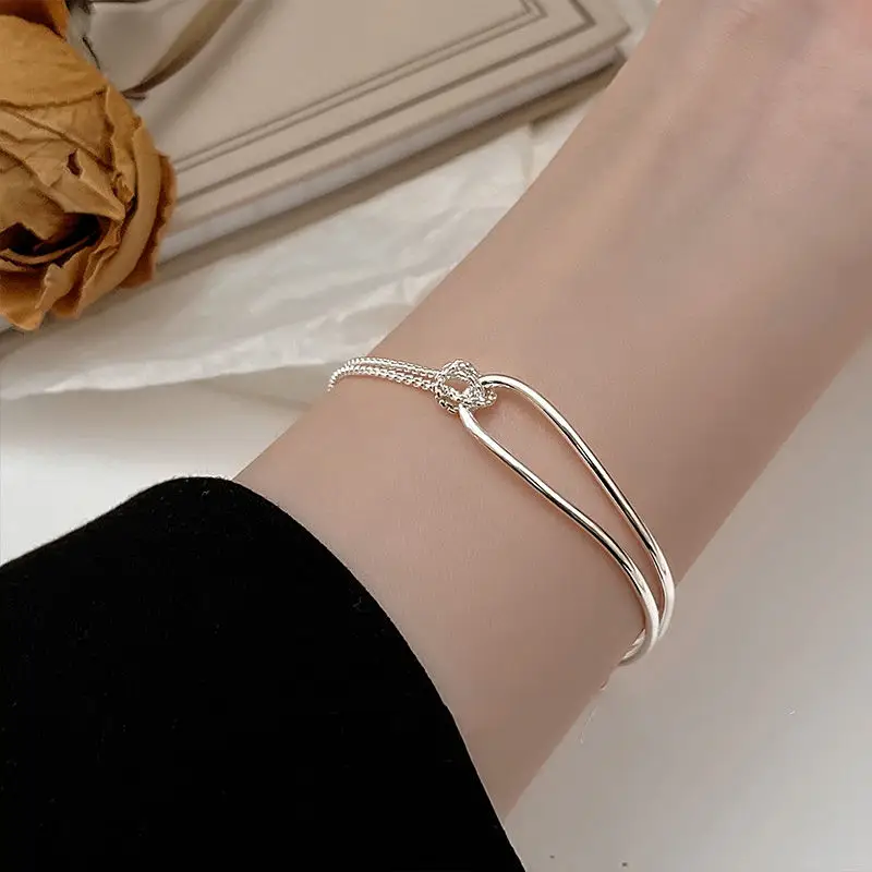 打結 拼接 925純銀 手鍊 高級感 氣質 簡約 半圈 銀手鐲 手鍊