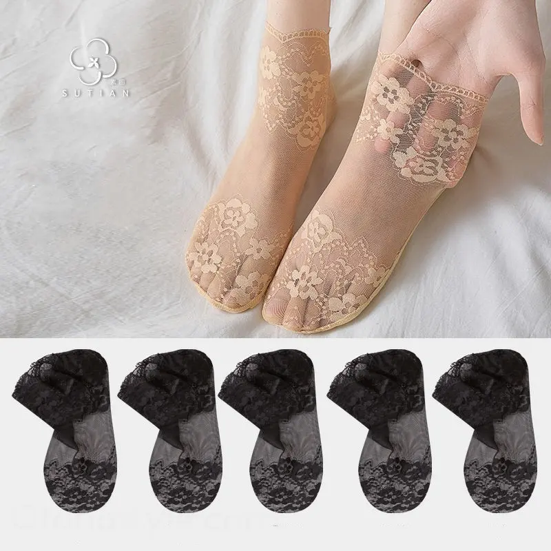 薄款蕾絲襪子短筒棉襪透氣 性感短襪白色