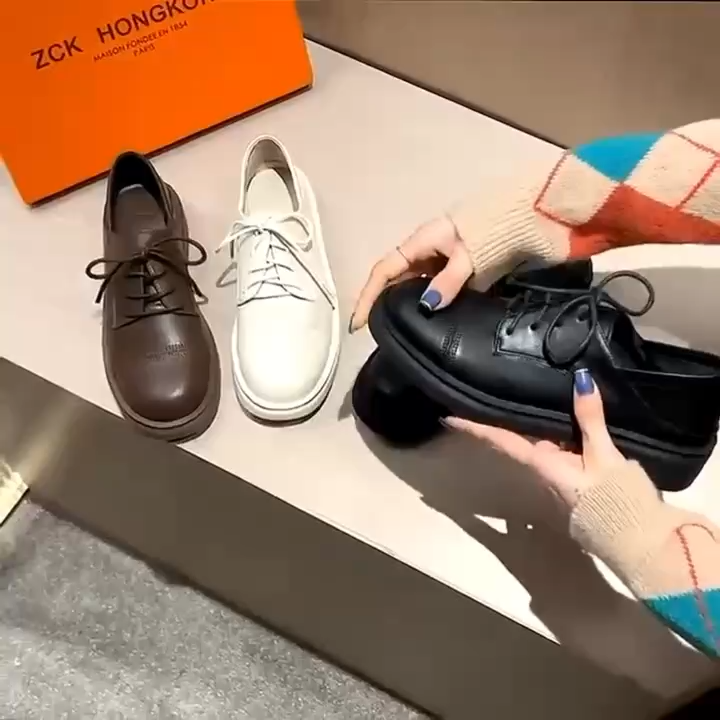 鞋面材質:超纖皮後跟高:中跟(3cm-5cm)鞋底材質:橡膠閉合方式:系帶風格:英倫製作工藝:膠粘鞋面內裡材質:超纖皮鞋頭款式:圓頭跟底款式:平底開口深度:淺口功能:防滑,輕便,耐磨流行元素:羅馬風格,淺口