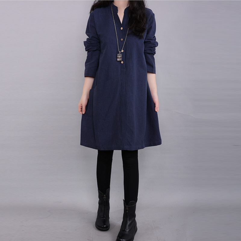 秋季韓版休閒立領寬鬆顯瘦長袖連身裙 大尺碼洋裝