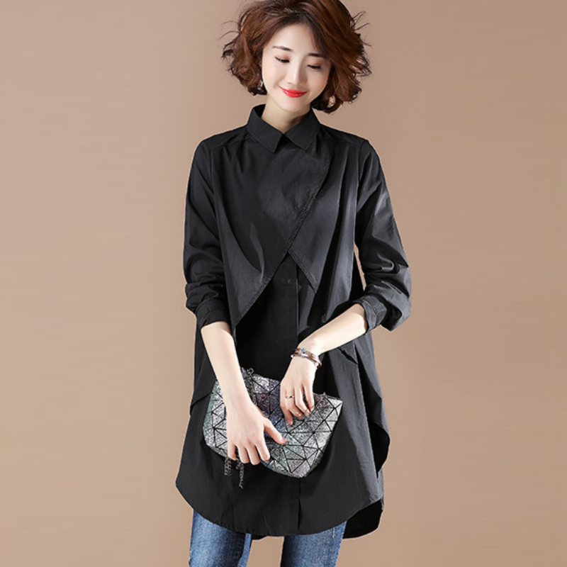 文藝設計感長袖襯衫 春秋寬鬆大尺寸中長款