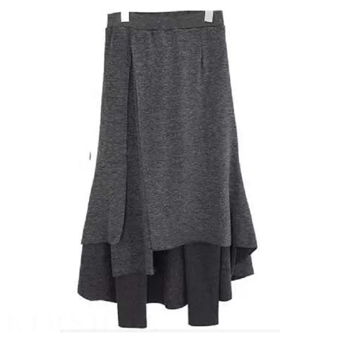 二合一設計不規則拼接保暖褲裙 高腰刷毛修身長褲裙