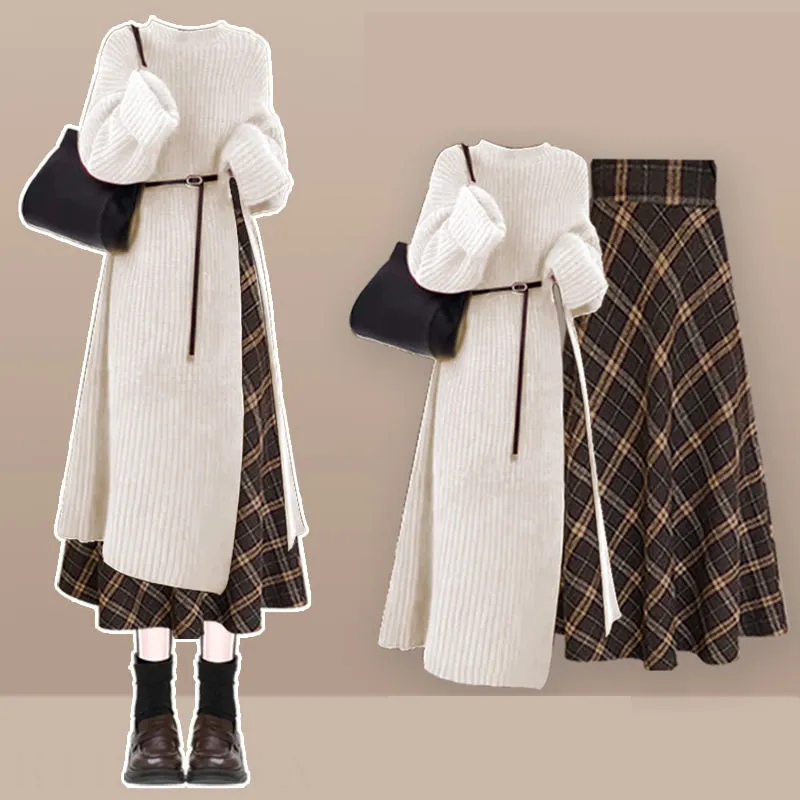 【單品可選】法式高級感套裝氣質長針織毛衣搭顯瘦格紋半身裙兩件套