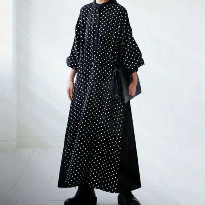 波點日系長洋 簡約清爽長袖拼接波點圖案連身裙