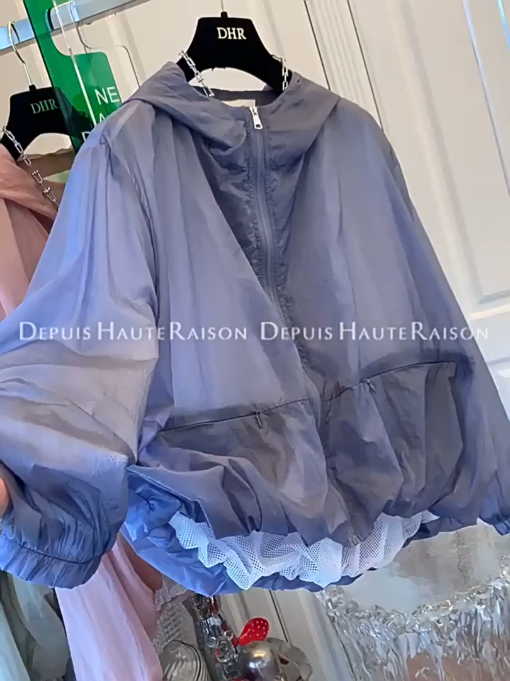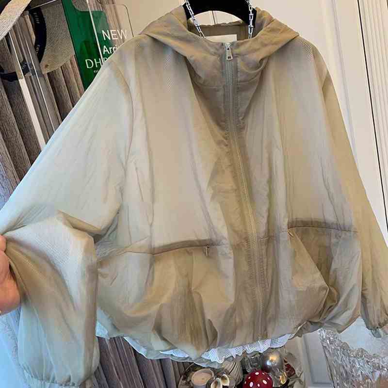 大尺碼寬鬆顯瘦連帽抗UV連帽罩衫 防曬短款外套 防潑水抗靜電微甜心機設計