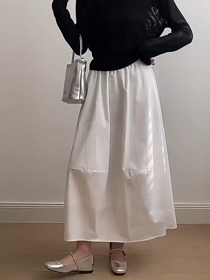 鬆身收腰花苞擺 鐘型剪裁彈力腰封傘裙(有口袋有裡襯)