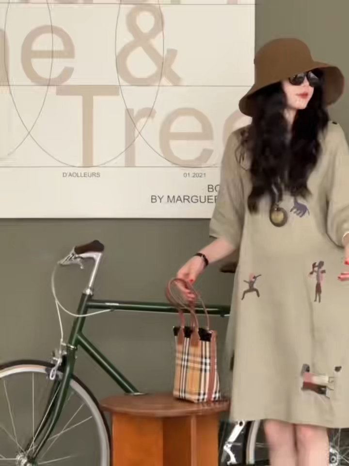 夏季森系刺繡連身裙 圓領寬鬆A字版型 文青甜美洋裝