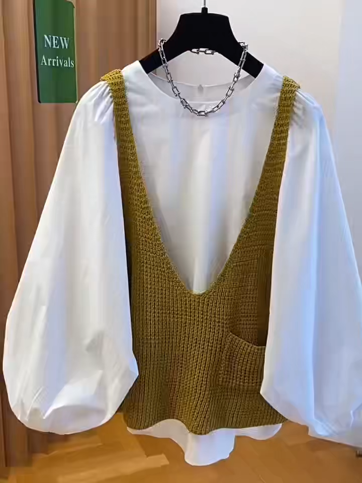 針織背心+白襯衫 韓系兩件式套裝 清新簡約 秋季百搭(大尺碼友善)