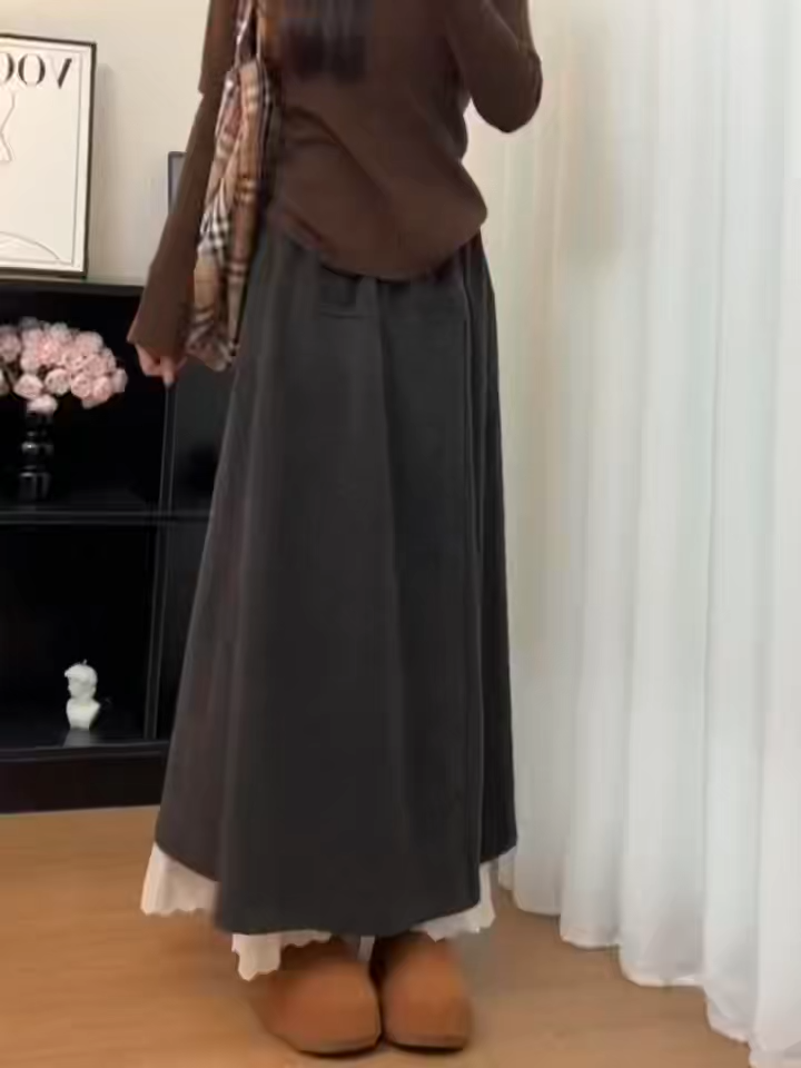 深灰蕾絲拼接褲裙 闊腿垂墜感 嬌小友善 秋季新款