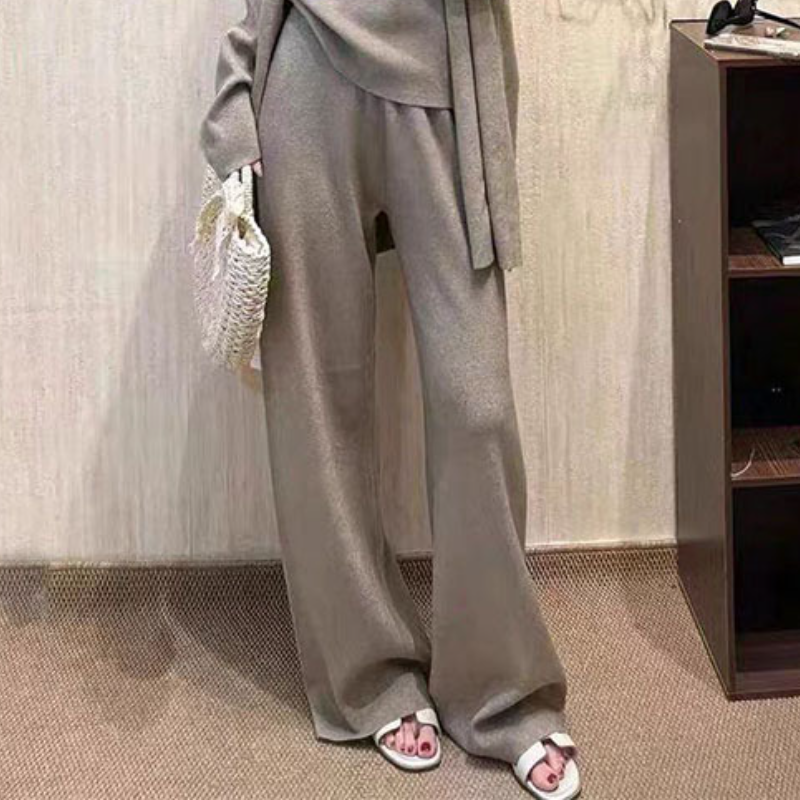 針織三件套 開襟外套+V領背心+高腰寬版長褲(秋冬質感)