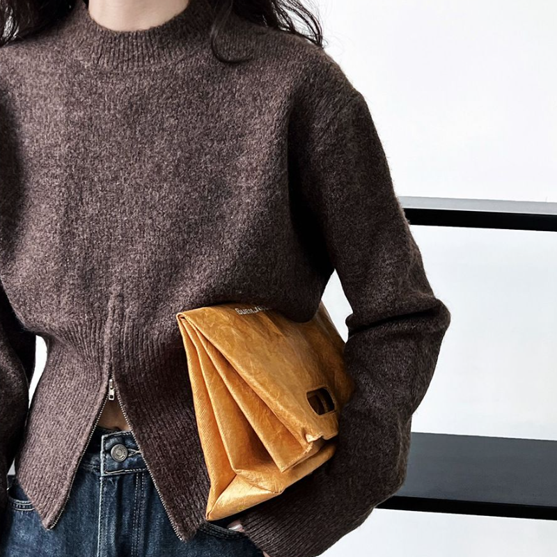 開叉拉鍊設計短版針織上衣 簡約剪裁 日常好搭