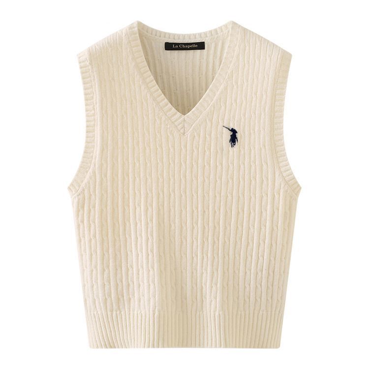 美式復古麻花針織背心 V領設計 寬鬆慵懶感無袖上衣