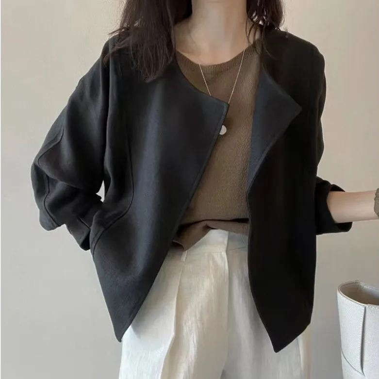 圖案 素面衣門襟 開衫材質 聚酯纖維穿著場合 通勤 , 假日/出外尺碼感 寬鬆感穿著效果 高級感修飾體型 自然骨架線條 寬鬆背部設計 封閉式背領型 圓領季節 春夏流行元素 開叉袖型 常規風格 時尚 , 簡約袖長 長袖顏色 黑色 , 白色功能 耐久性